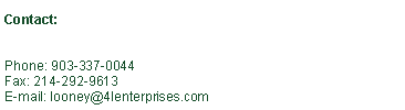 W. Matthew Looney W. Matthew Looney is owner and managing partner of 4LE, LLC, a real estate investment company involved in acquisition, development/conversion and sale of apartment buildings and retail shopping centers. With equity investments located from Texas to California, Matt has acted as managing partner of numerous projects and continues to seek new opportunities. Since the inception of the company, he has assisted in the acquisition of over $350,000,000 in real estate on the east and west coasts while completing private-equity investments of $8,000,000 during the same time. Prior to beginning his own company, he worked as a commercial lender with two locally owned banks in North Texas. He received his BBA from Baylor University (1995) and is a Certified Commercial Investment Member (CCIM). He lives in Denison, TX, with his wife Jennifer and two children, Davis and Lindsay Jane and yellow lab, Buck.
